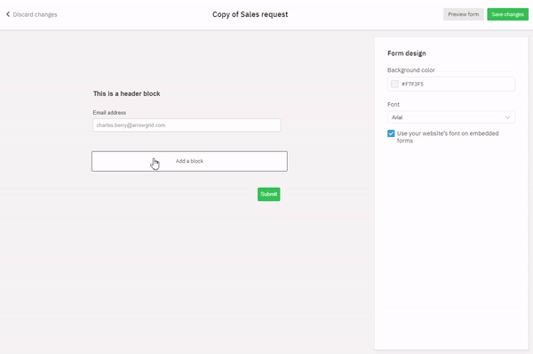 In the form editor, when adding a new block, you’ll find the option for ‘File upload’ for your contact and lead pages. With this new field, you can ask your customers to upload screenshots when requesting technical support, submit resumes for job applications, collecting images for contests or features for newsletters, or any other occasion where a file would provide important context.